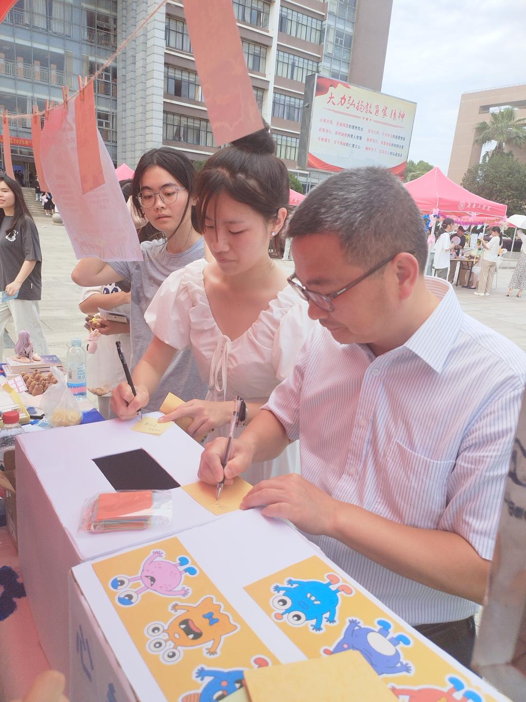 活动现场设置多个互动区域,涵盖心理测试、游戏体验、艺术表达等方面。在心理测试区,同学们通过专业的心理测试量表,深入了解自己的性格特点、情绪状态和人际关系模式。游戏体验区更是热闹非凡,如“情绪投掷赛”活动,同学们把承载着焦虑与不安的小沙包抛向情绪净化区,不安仿佛也在这瞬间被驱散化解;“挑战呼啦圈”关卡,同学们将腰间套上灵动的呼啦圈奋力转动,身体的滞涩感仿佛随着呼啦圈的旋转渐渐消散;“时光信箱”游戏,同学们把写满对未来期许与憧憬的信笺装入胶囊,希望仿佛在这密封空间里悄然酝酿。艺术表达区则为同学们提供了释放情感、表达自我的平台,“拓染心迹、植愈时光”游戏,让同学们通过绘画、手工制作等方式呈现内心世界。